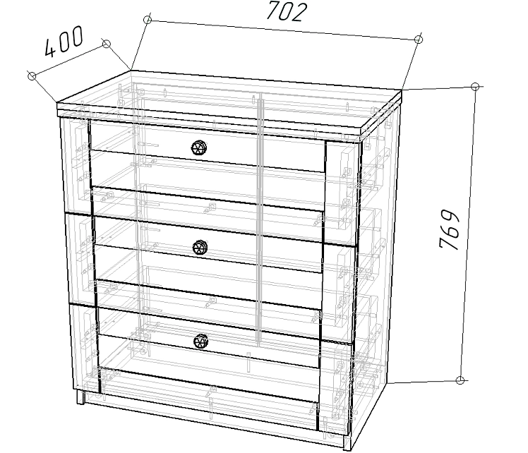 Комплектация: шариковые направляющие 100% выдвижения, ручка кнопка черный матовый RC289BL.4 Boyard Артикул № 719946, крышка 32 мм ЛДСП