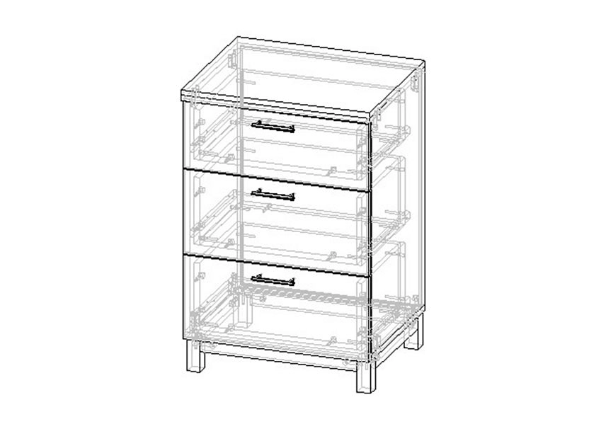 Комплектация: направляющие шариковые 100% выдвижения, фасады с фрезеровкой, ножки массив дерева