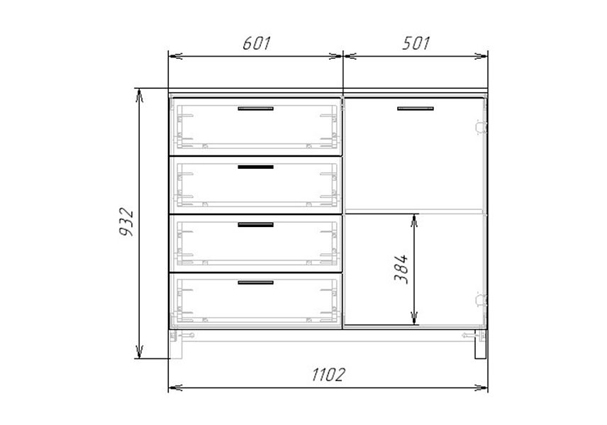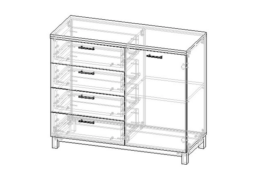 Комплектация: направляющие шариковые 100% выдвижения, фасады с фрезеровкой, петли без доводчика, ножки массив дерева