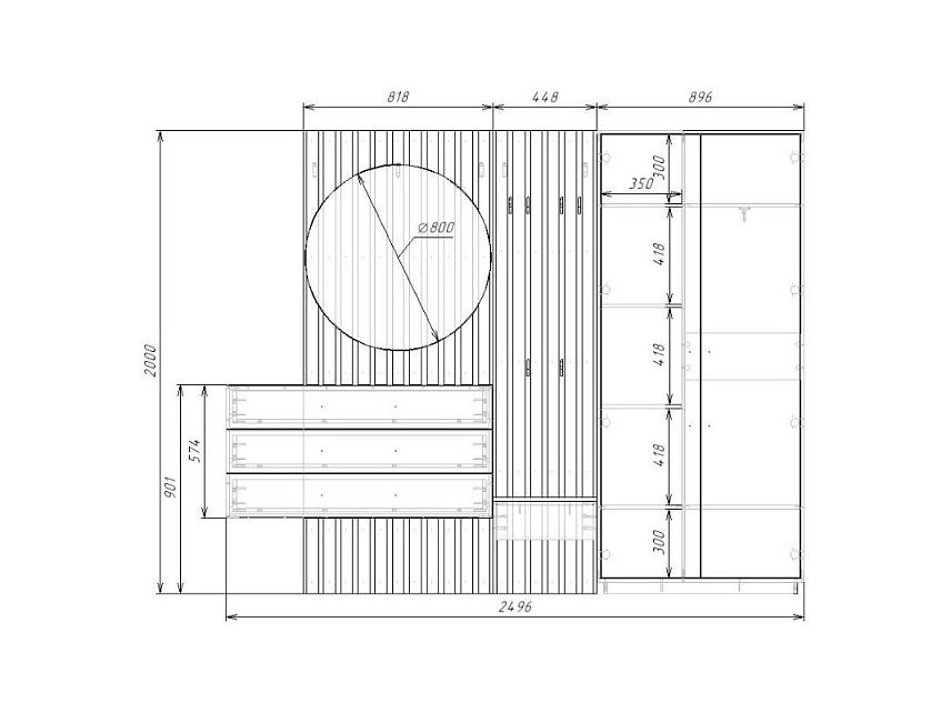 | Шкафы распашные, угловые | 350 | 800 | 500 |