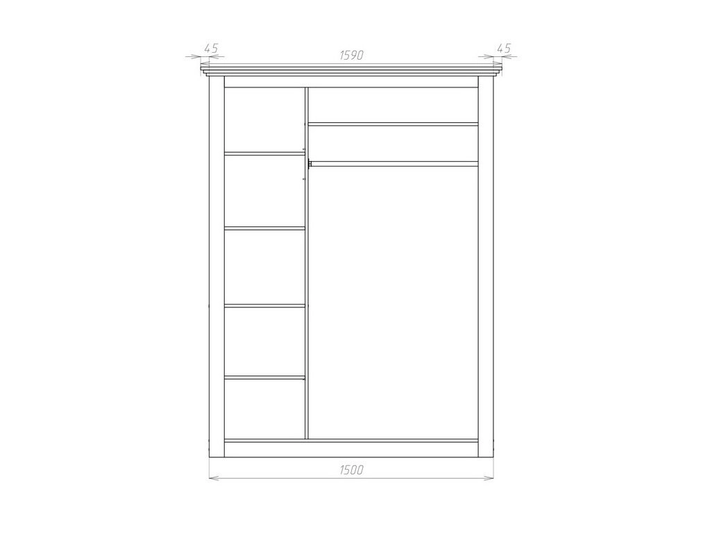 6. При высоте шкафа 1900 и 2000 мм текстура ЛДСП располагается горизонтально, как на фото. При высоте от 2100 до 2500 мм текстура располагается вертикально.
