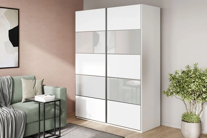 Шкаф-купе Реал-5 в белом цвете с зеркальными вставками