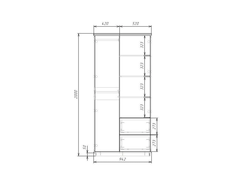 | Шкаф-купе 2 дверный (4-5 пачки) | 350 | 1100 | 600 |