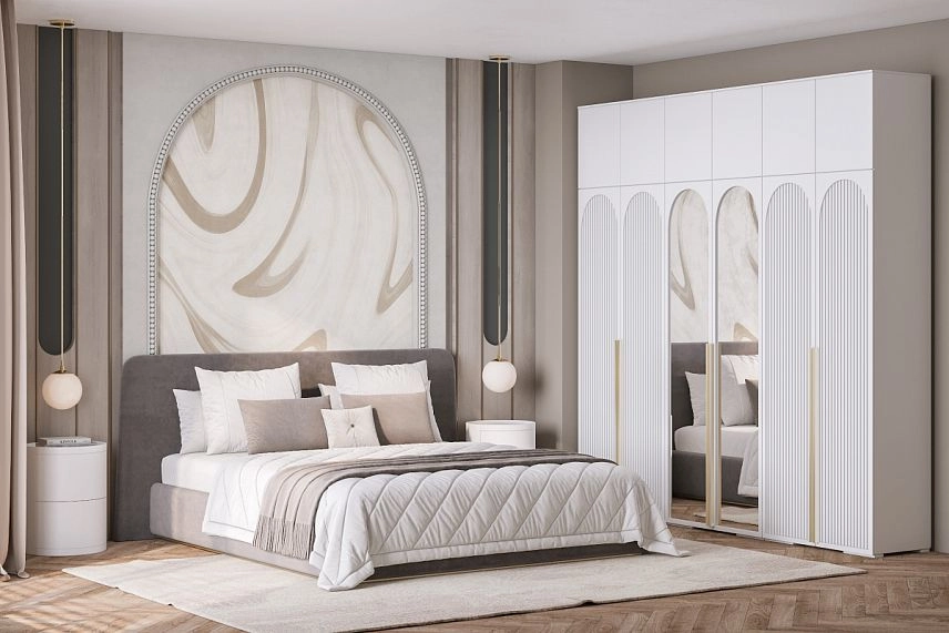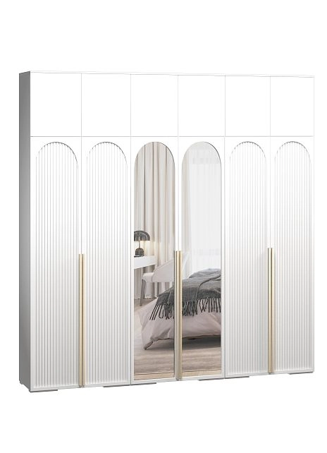 - Шкаф распашной Брей-6 Хит с антресолью с зеркалами Белый