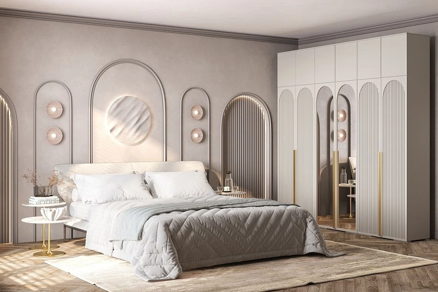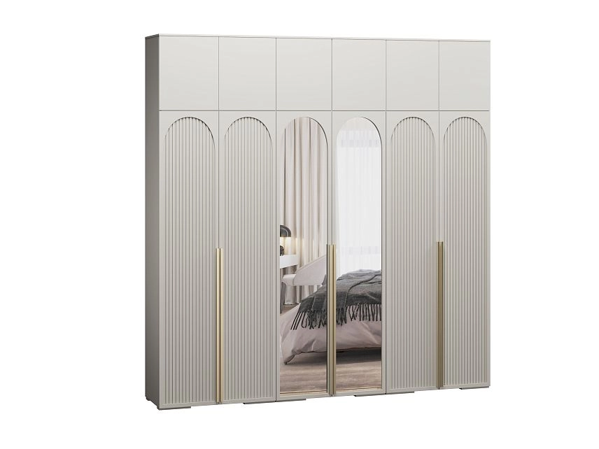 - Шкаф распашной Брей-6 Хит с антресолью с зеркалами Кашемир