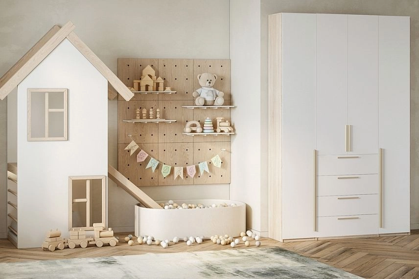 - Шкаф распашной Хейсон-5 Белый Дуб Сонома
