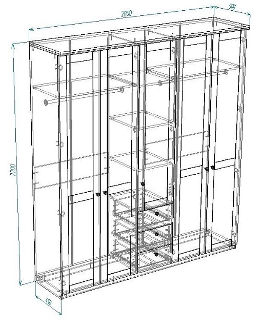 | Шкаф-купе 4 дверный (6-7 пачек) | 550 | 1600 | 800 |