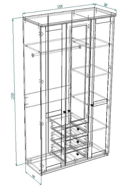 | Шкафы распашные, угловые | 350 | 800 | 500 |
