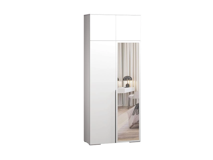 - Шкаф распашной Солфорд 2 с антресолью с зеркалом Белый
