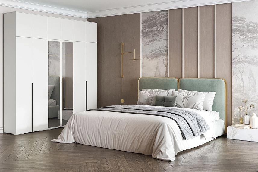 - Шкаф распашной Солфорд 6 с антресолью с зеркалами Белый