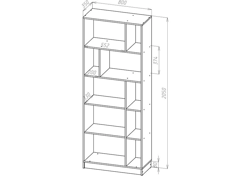 | Книжные шкафы, стеллажи от 600 мм до 1000 мм | 350 | 1000 | 600 |
