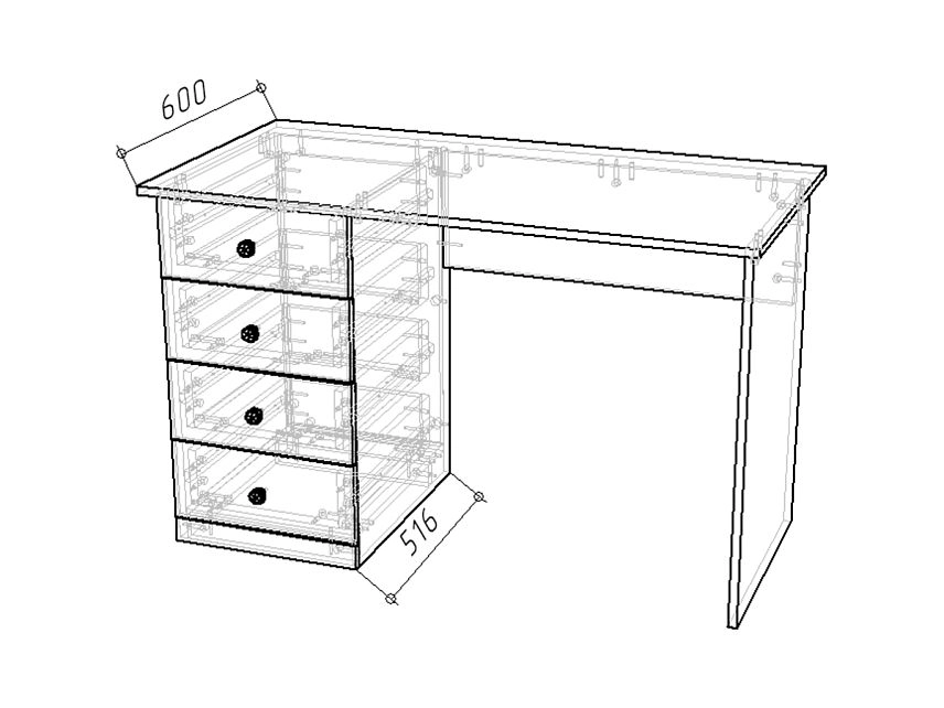 Комплектация: шариковые направляющие 100% выдвижения без доводчика, петли без доводчиков, столешница кромка 2мм в цвет корпуса
