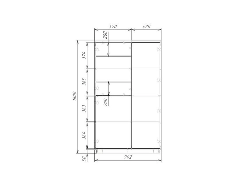 | Шкаф-купе 2 дверный (4-5 пачки) | 350 | 1100 | 600 |
